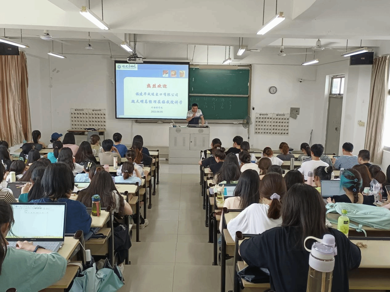 为深入推进校企合作育人,切实提高教学质量,6月5日-9日,bat365正版唯一官网商务英语专业先后邀请了福建华成进出口有限公司总经理、福州译国译民翻译集团部门经理和资深译员、安徽文香科技股份有限公司福建区总监以及福州泰禾卡宾斯基酒店培训经理等多名企业专家,在走进实践教学课堂的同时,为商务英语专业学生开展系列讲座。