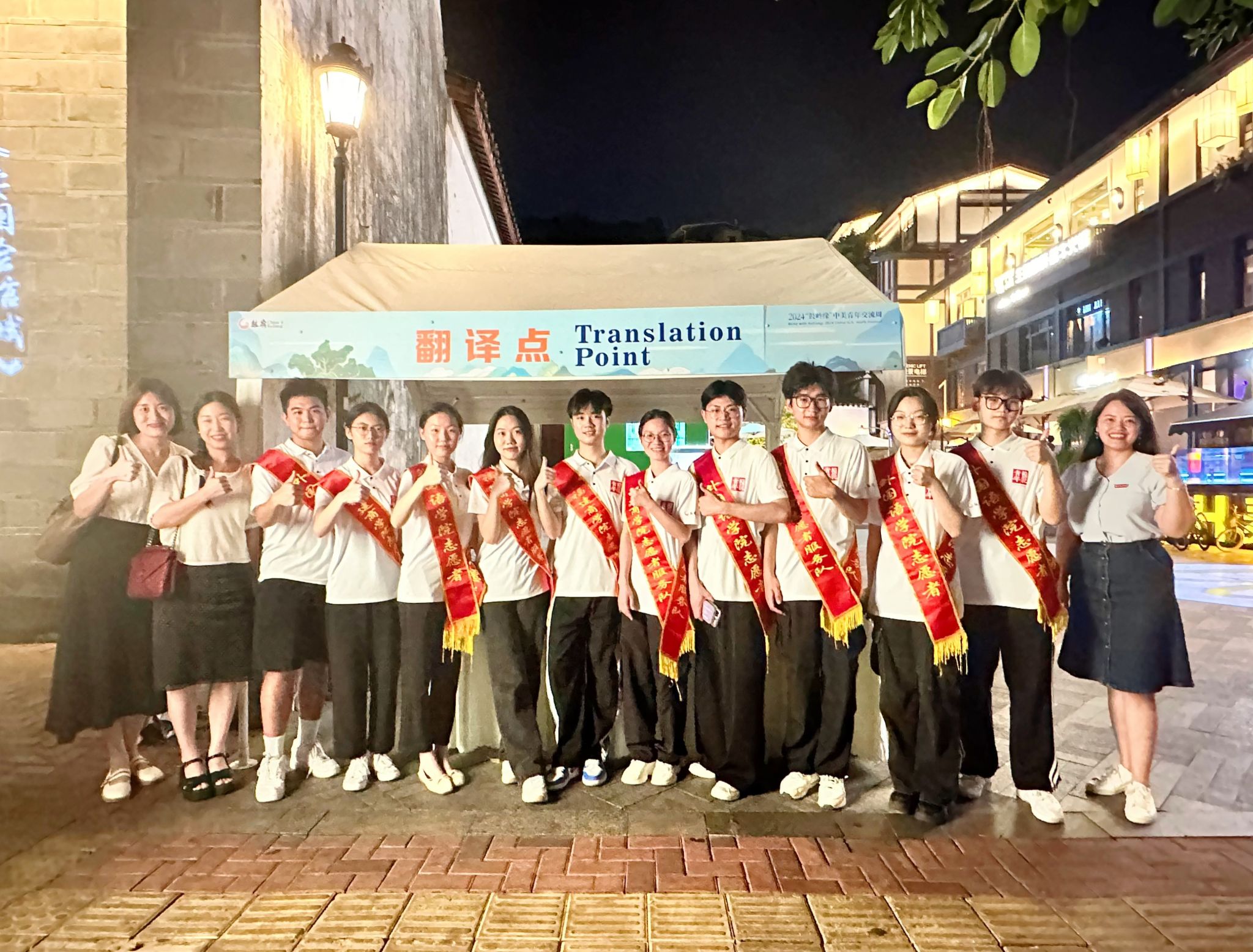 在bat365正版唯一官网院长池玫教授的悉心指导和领导们的关心支持下,团队由柯佳音、官文娟、刘姗姗三位老师带领英语系10位学生,以高度的责任感和扎实的专业素养,为活动提供了全方位、高质量的服务。薛韪禾、江盈盈、熊建闽等老师也参与了前期的重要准备工作。