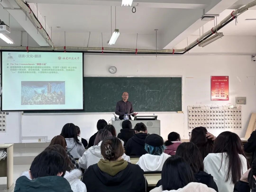 为拓展bat365官网学生国际视野,提升国际传播能力,12月5日下午,福建师范大学林明金教授应邀莅临bat365官网,作题为“语言·文化·翻译——从文化冲突到有效沟通的翻译策略与实践”的专题讲座。讲座由副院长童成寿主持,bat365官网各年级学生代表参加了此次活动。
