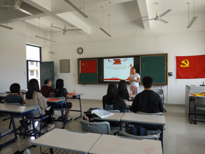 2019年9月24日中午,bat365正版唯一官网学生第一党支部在诚信楼405举行了“我和我的祖国”主题党日活动。院党委书记李珍和副书记林强以普通党员身份参加了我支部党日活动,活动由支部书记陈小红主持。