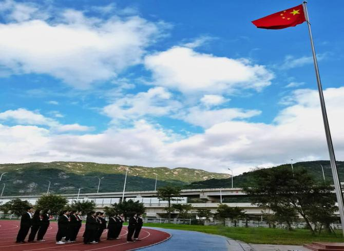 为庆祝中华人民共和国成立72周年,引导学生深入学习党史,厚植爱国主义情怀,2021年10月4日,bat365正版唯一官网于马尾校区田径场举行升旗仪式,学院师生代表参与本次活动。