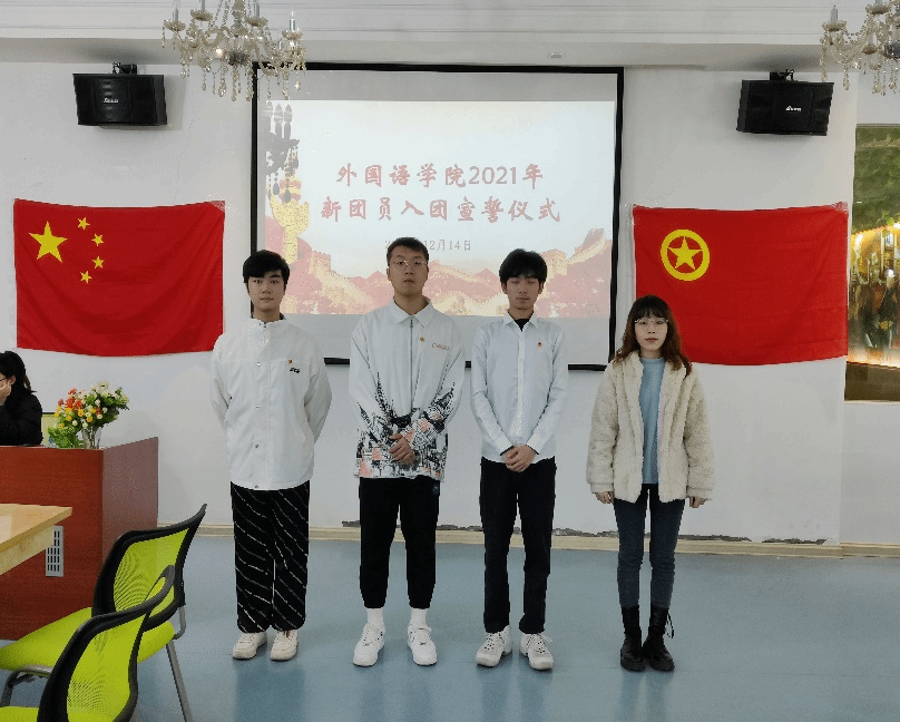 为加强新团员的思想引领,坚定共产主义信念,2021年12月14日,外国语于外语体验中心举行2021年新团员入团宣誓仪式。