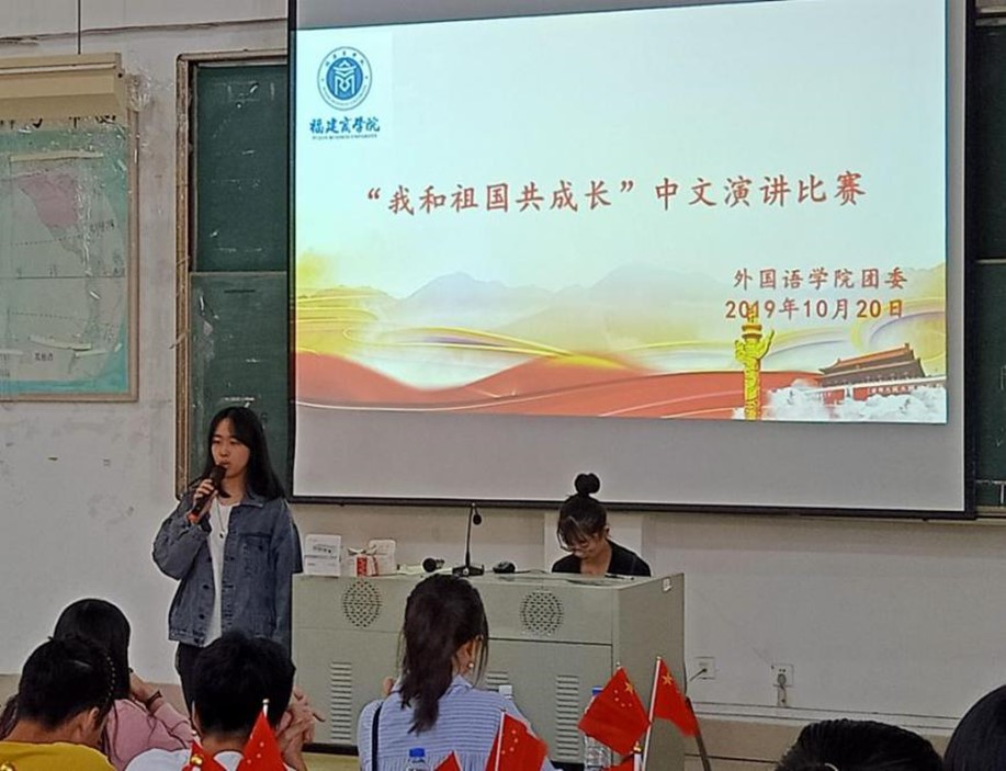 2019年是中华人民共和国成立的70周年,为进一步培养学生家国情怀,激发爱国热情,2019年10月20日,bat365正版唯一官网于世界厅举办“我和我的祖国共成长”中文演讲比赛。共计13名选手参与本次比赛。