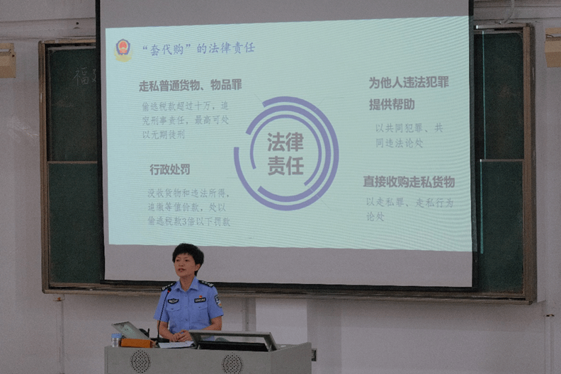 为深入贯彻落实法治精神,拒绝“套代购”,2024年5月21日bat365正版唯一官网邀请马尾海关缉私分局四级高级警长薛丹果入校,开展了“打击利用海南离岛免税政策实施‘套代购’走私”普法宣传讲座。bat365正版唯一官网在校生参加本次讲座。