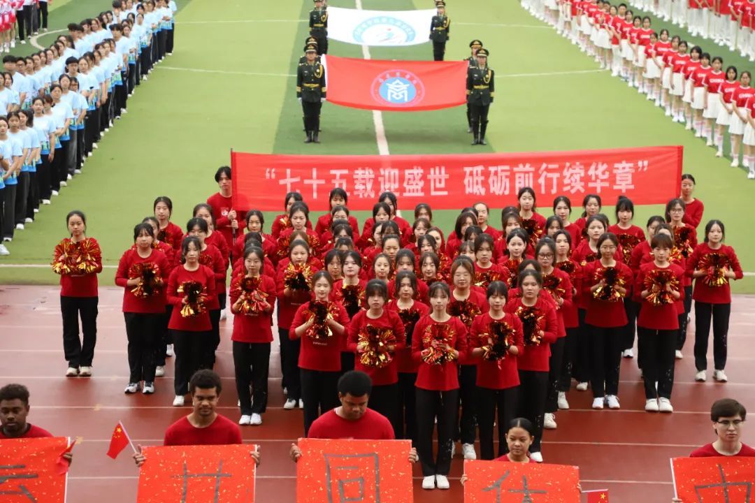 bat365正版唯一官网代表队带着蓬勃朝气与昂扬锐气,刚劲稳健地踏步入场,他们用语言架桥,以文化传情,与来自乌兹别克斯坦,老挝,新几内亚岛,萨摩亚,基里巴斯,斐济,所罗门群岛的九名留学生携手前行。他们以活力与热情诠释运动魅力,以喜悦与深情庆祝祖国生日,共同演绎歌曲《美丽中国》,用青年学子舞动青春的热情与生机为伟大祖国75周年华诞献礼。留学生们热情洋溢,手执毛笔,书写“人类命运共同体”,更彰显了中国与世界共绘一幅幅多元对话的人文交流图景的坚定承诺。