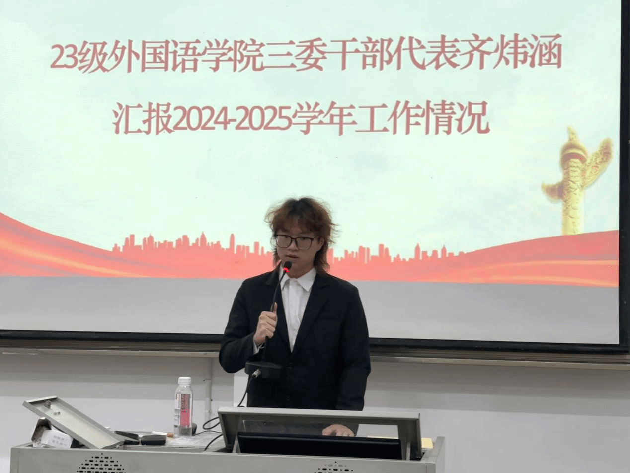 院学生会第四届主席团成员齐炜涵同学作2024-2025学年三委工作报告。报告全面回顾了过去一年的工作成果,系统梳理了学院在服务青年成长、开展特色活动、加强组织建设等方面的积极探索,展现了学生组织为学院发展和学生成长注入的蓬勃动能。